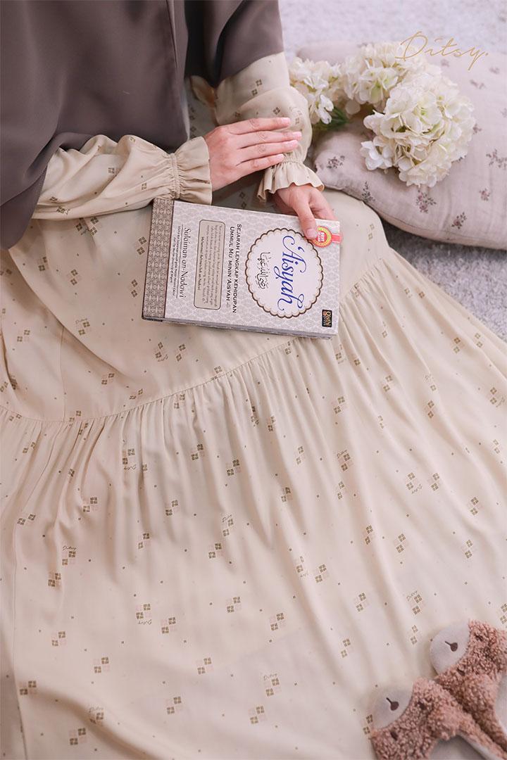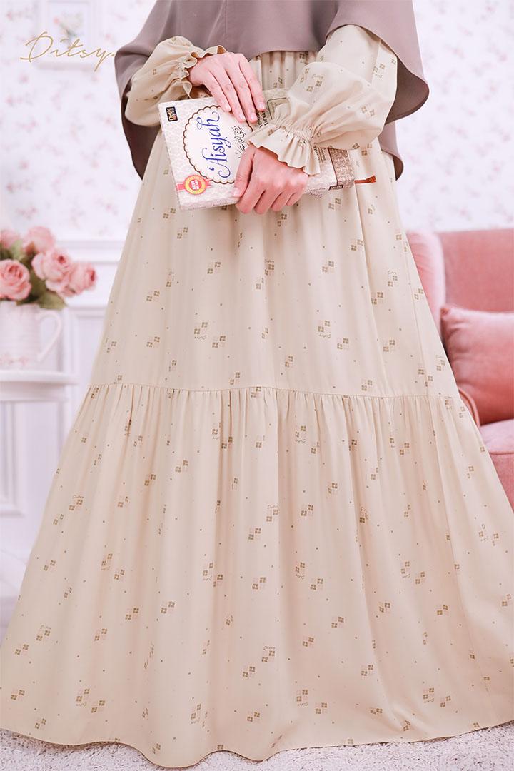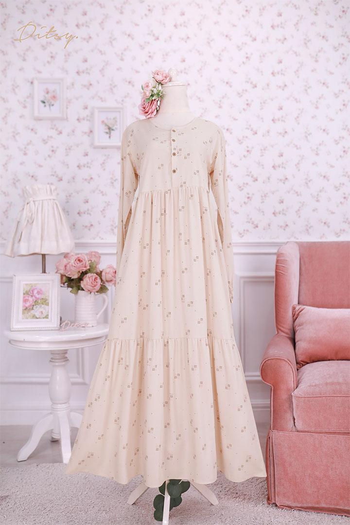 • Model Fenna Vanilla : Series 3, warna dasar vanilla. Ada rempel didepan dan belakang bagian perut dan lutut yg membuat daster ini lebih slim namun tetap leluasa