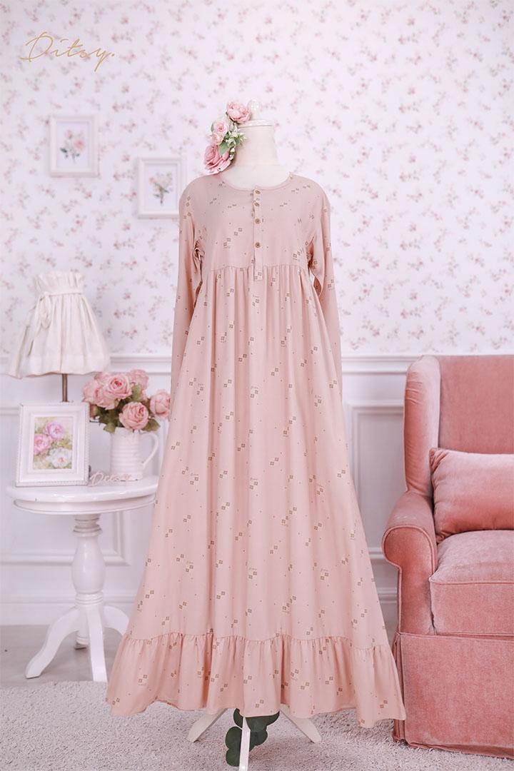 • Model Fenna Light Pink : Series 5, warna dasar pink creamy. Ada ruffle bagian bawah menambah cantik daster ini