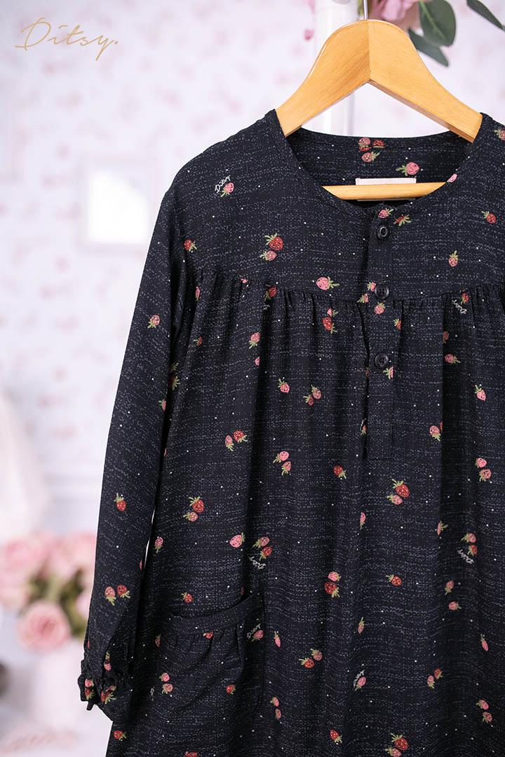 • Little Fraise Pajamas : warna dasar hitam