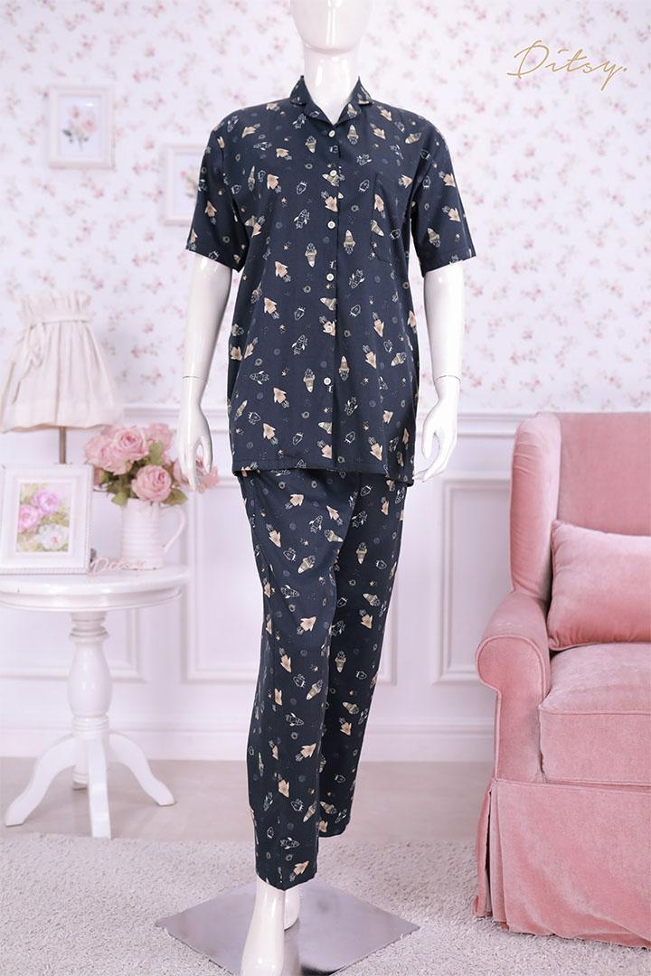 * Material: Katun Pinot , dengan warna dasar biru tua
