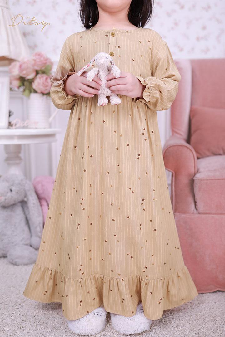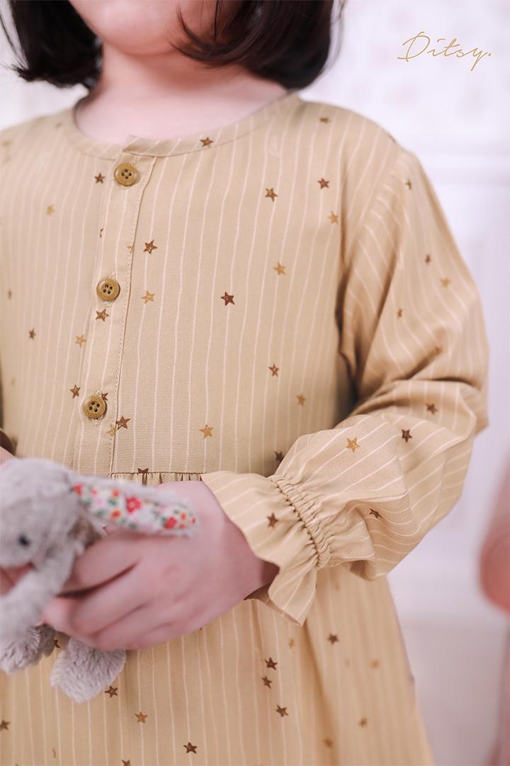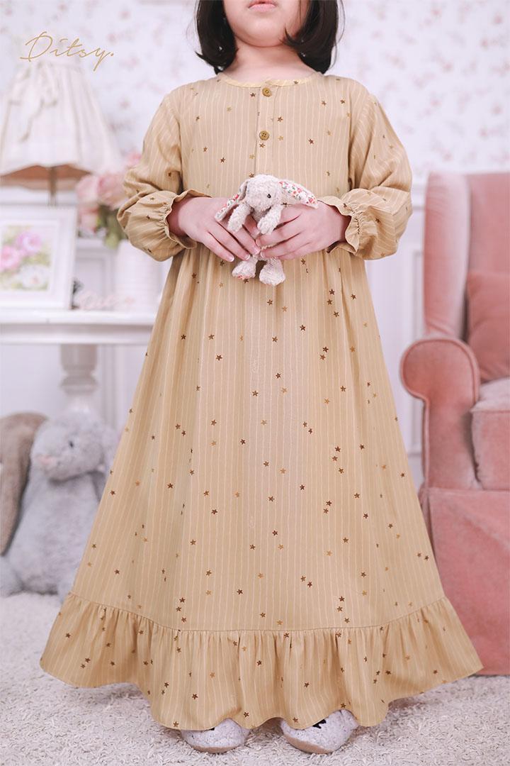 • Model Ster Beige : Series 5, warna dasar coklat muda. Ada ruffle bagian bawah menambah cantik daster ini.