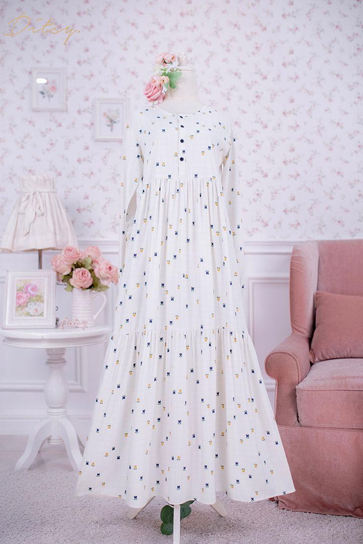 • Model Velerine Vanilla : Series 3, warna dasar putih. Ada rempel didepan dan belakang bagian perut dan lutut yg membuat daster ini lebih slim namun tetap leluasa.