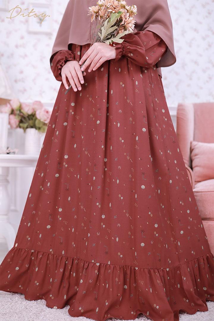 • Model Faline Red : Series 5, warna dasar merah ada hint orange. Ada ruffle bagian bawah menambah cantik daster ini