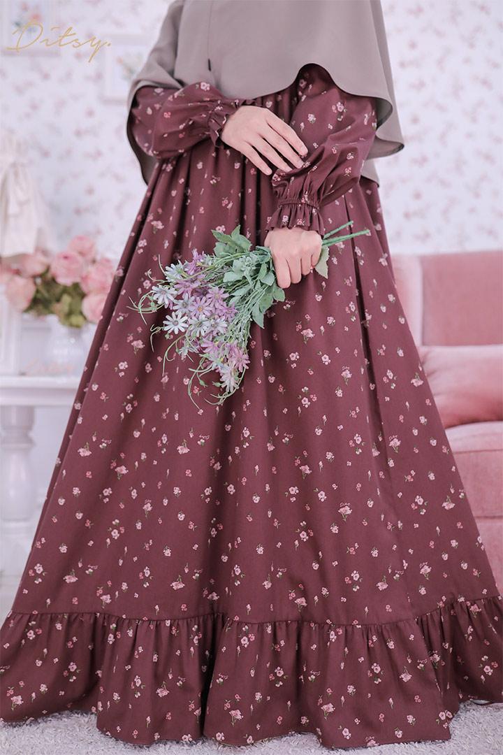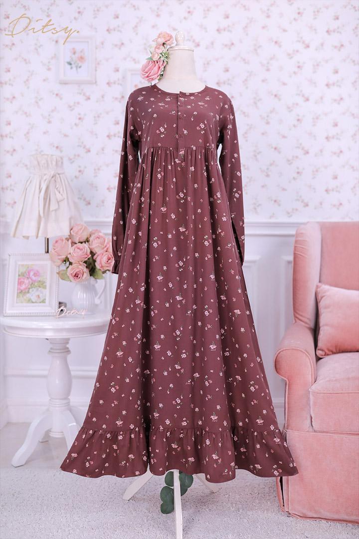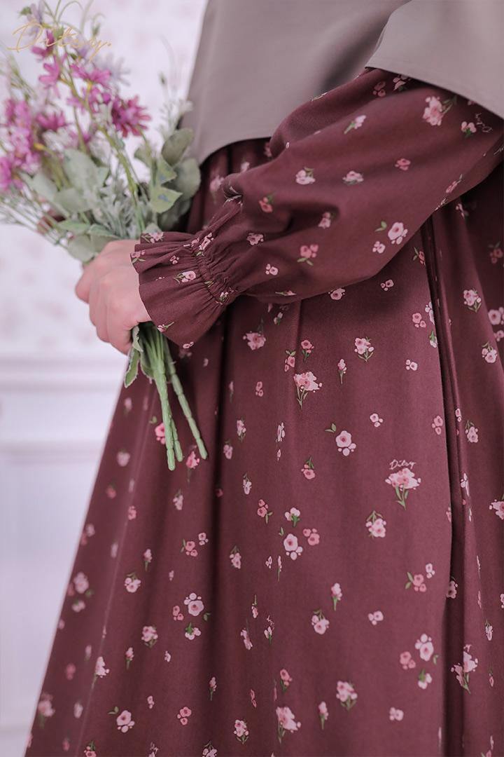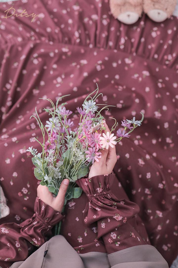 • Model Meara Burnt Maroon : Series 5, warna dasar merah ada hint pink. Ada ruffle bagian bawah menambah cantik daster ini