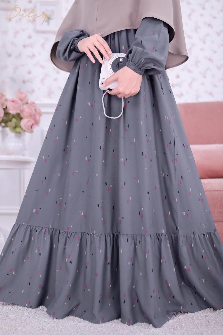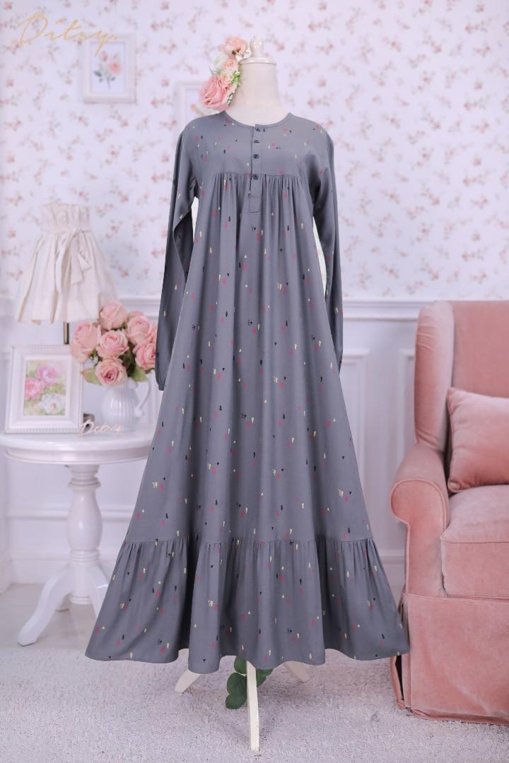 • Model Avra Ashgrey : Series 7 , warna dasar abu ada hint ungu. Ada rempel dibagian dada dan belakang namun tidak sekeliling sehingga membuat daster ini lebih leluasa