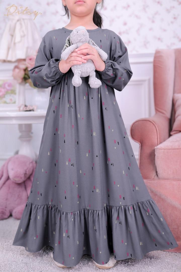 • Model Avra Ashgrey : Series 7 , warna dasar abu ada hint ungu. Ada rempel dibagian dada dan belakang namun tidak sekeliling sehingga membuat daster ini lebih leluasa