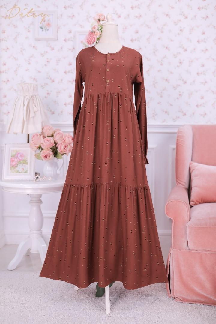 • Model Perla Teracotta : Series 3, warna dasar teracotta. Ada rempel didepan dan belakang bagian perut dan lutut yg membuat daster ini lebih slim namun tetap leluasa