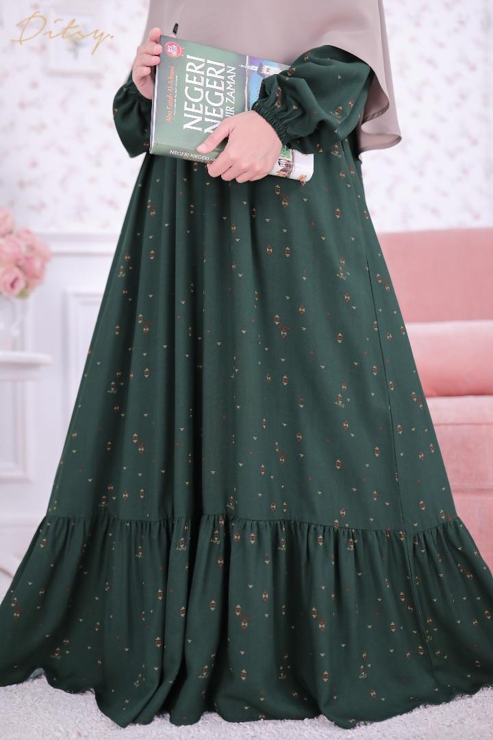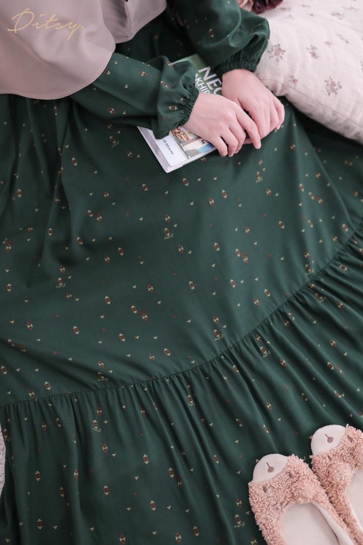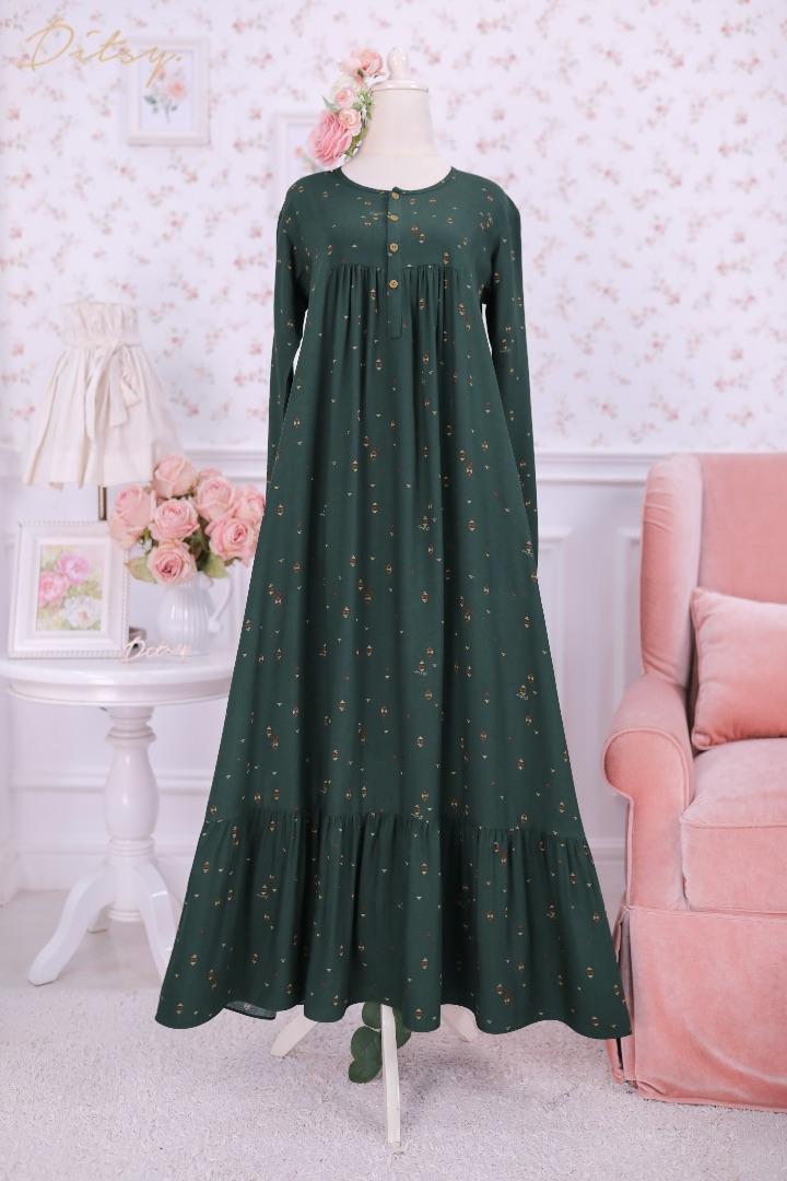 • Model Perla Emerald : Series 7, warna dasar hijau tua. Ada rempel dibagian dada dan belakang namun tidak sekeliling sehingga membuat daster ini lebih leluasa
