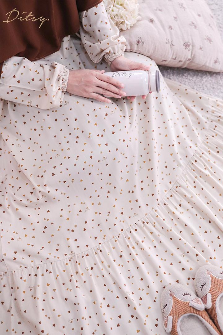 • Model Nyefe Beige : Series 7, warna dasar vanilla. Ada rempel dibagian dada dan belakang namun tidak sekeliling sehingga membuat daster ini lebih leluasa
