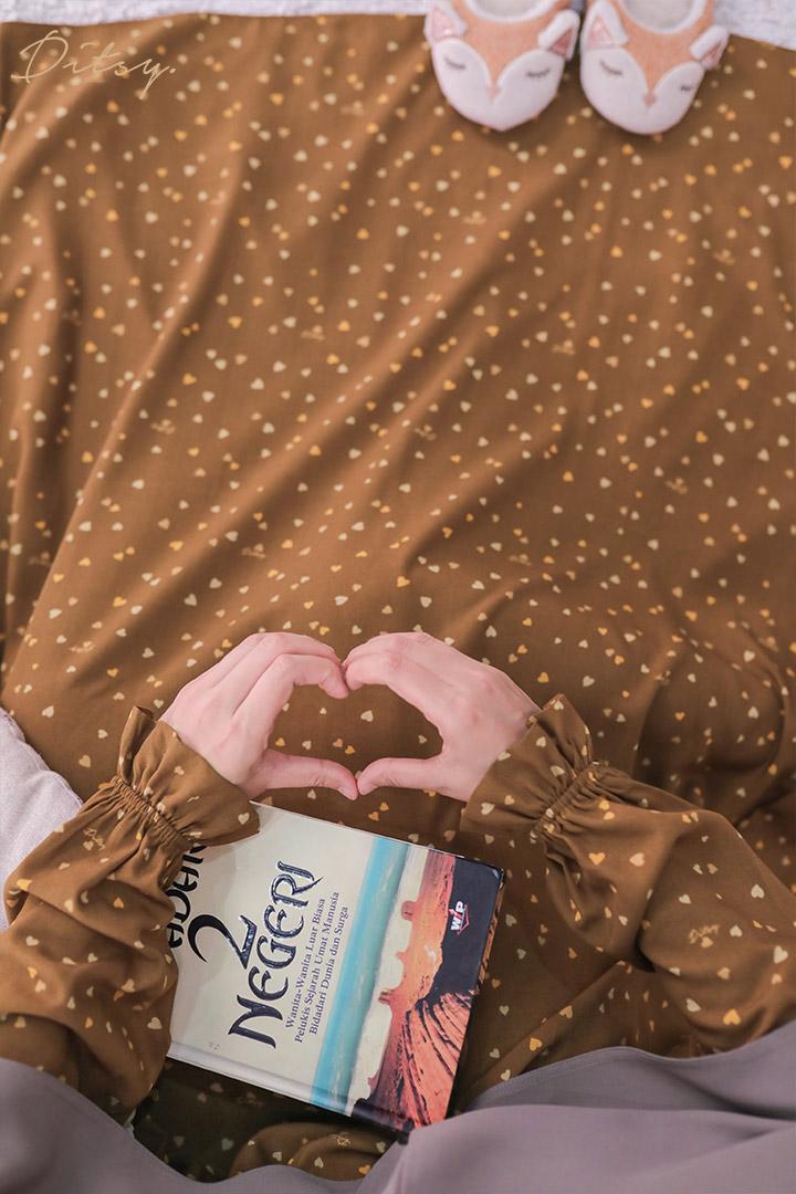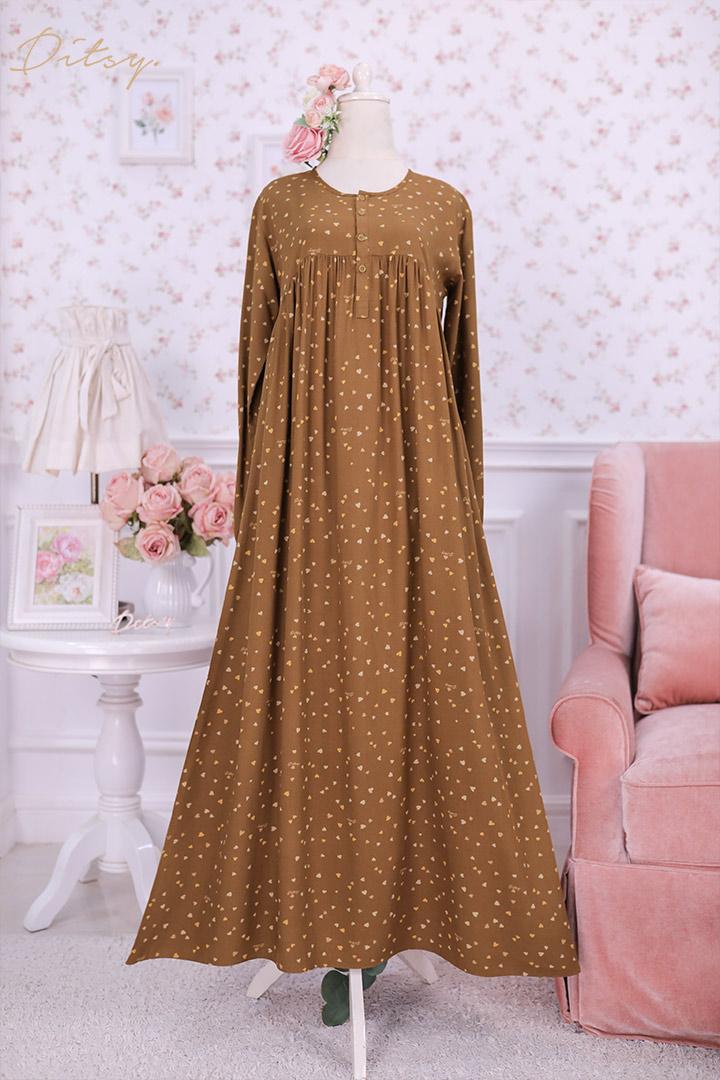 • Model Nyefe Nut Brown : Series 1, warna dasar coklat. Ada rempel dibagian depan dan belakang yang membuat daster ini lebih leluasa