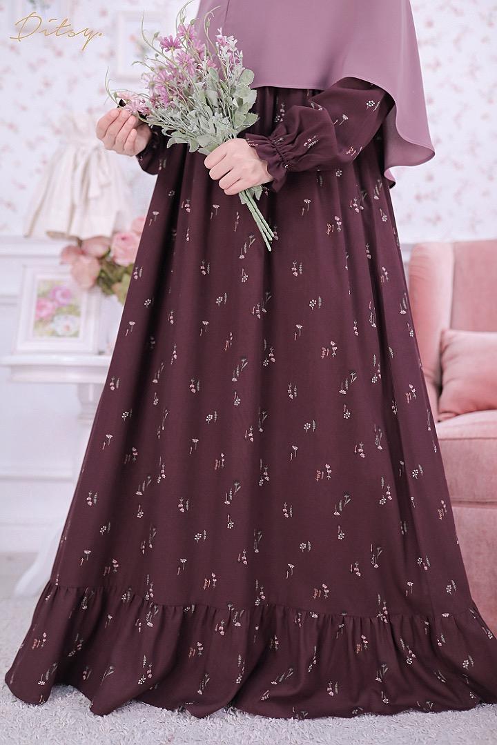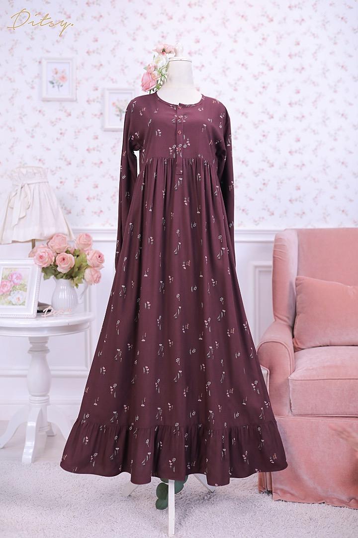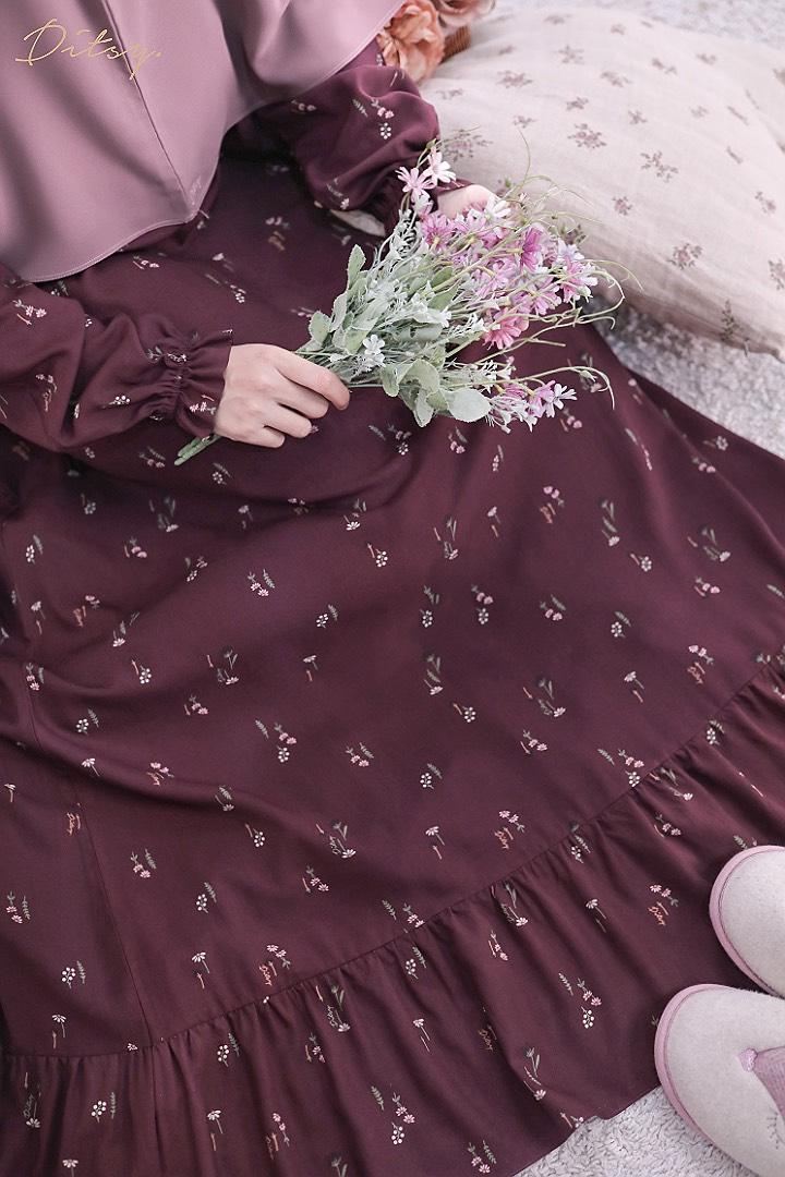 • Model Carys Wine : Series 5, warna dasar merah. Ada ruffle bagian bawah menambah cantik daster ini.