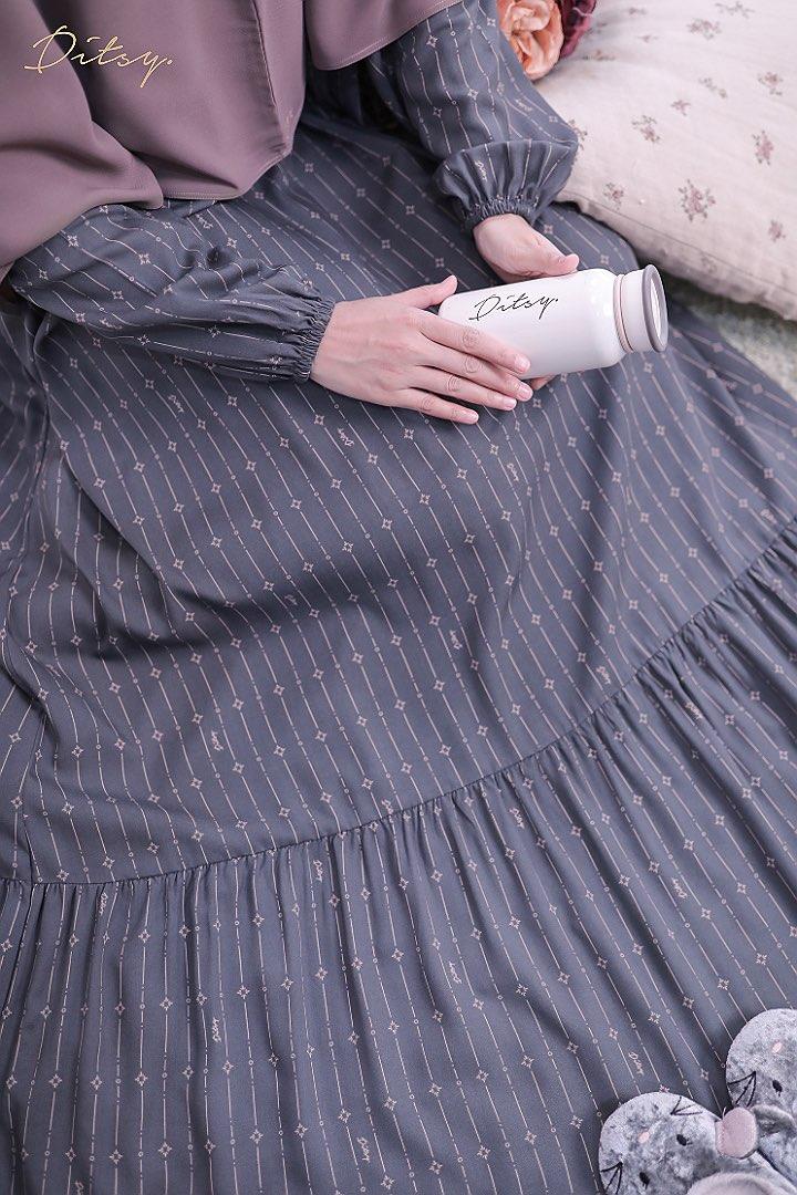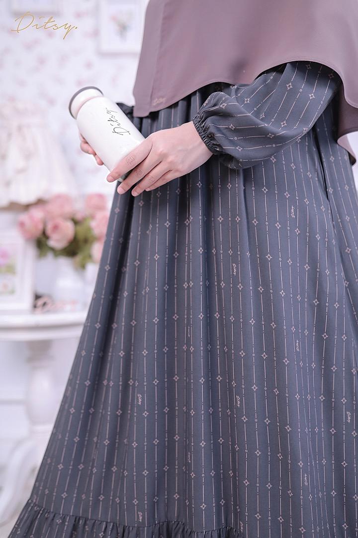 • Model Ismiria Grey : Series 7, warna dasar abu tua. Ada rempel dibagian dada dan belakang namun tidak sekeliling sehingga membuat daster ini lebih leluasa