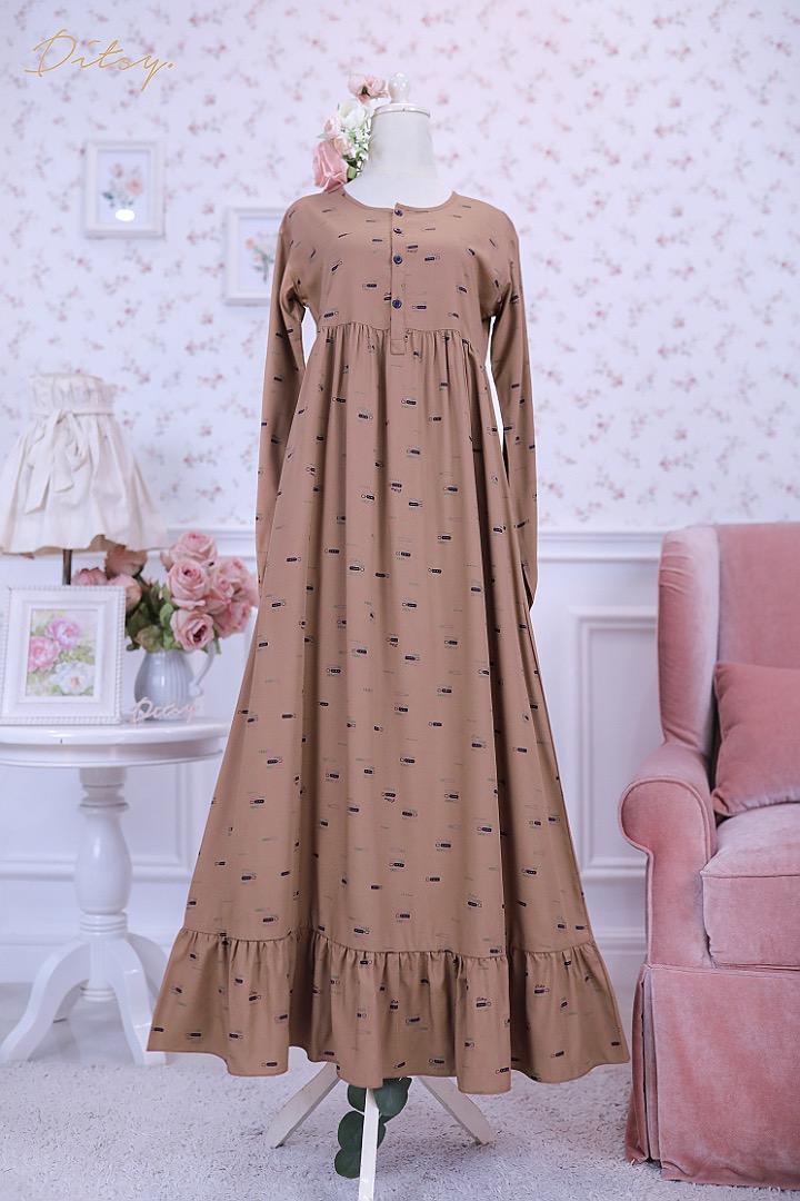 • Model Nilan Dutch Cocoa : Series 5, warna dasar coklat. Ada ruffle bagian bawah menambah cantik daster ini