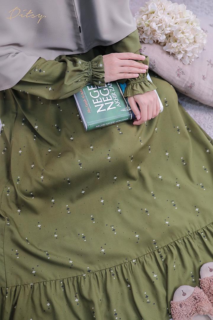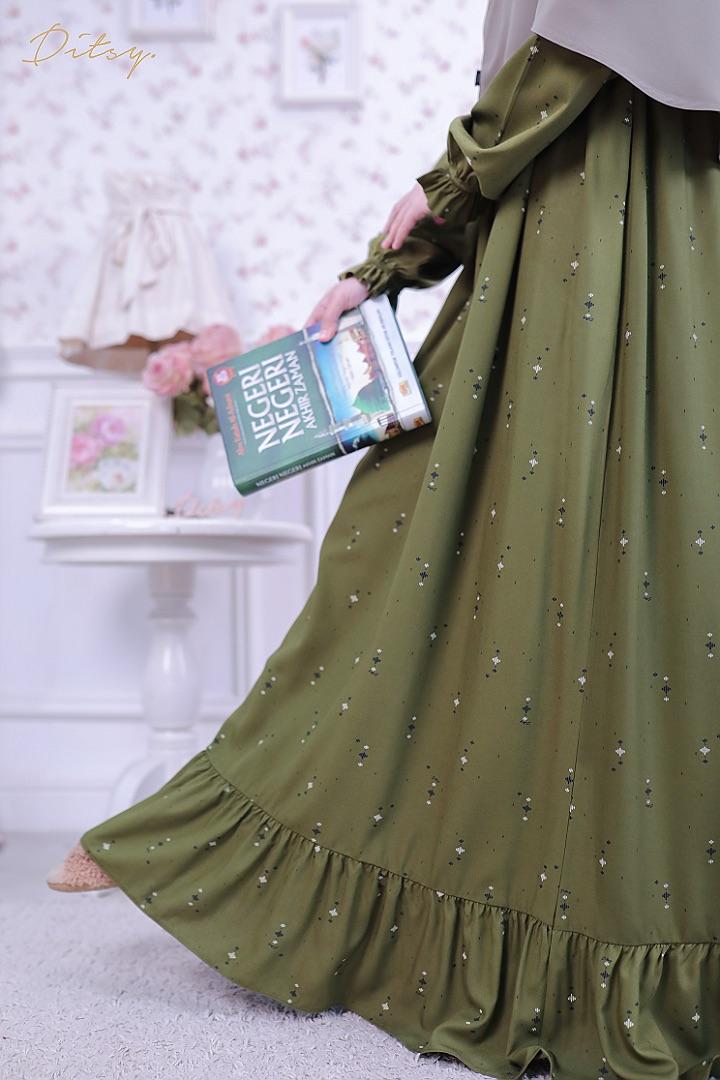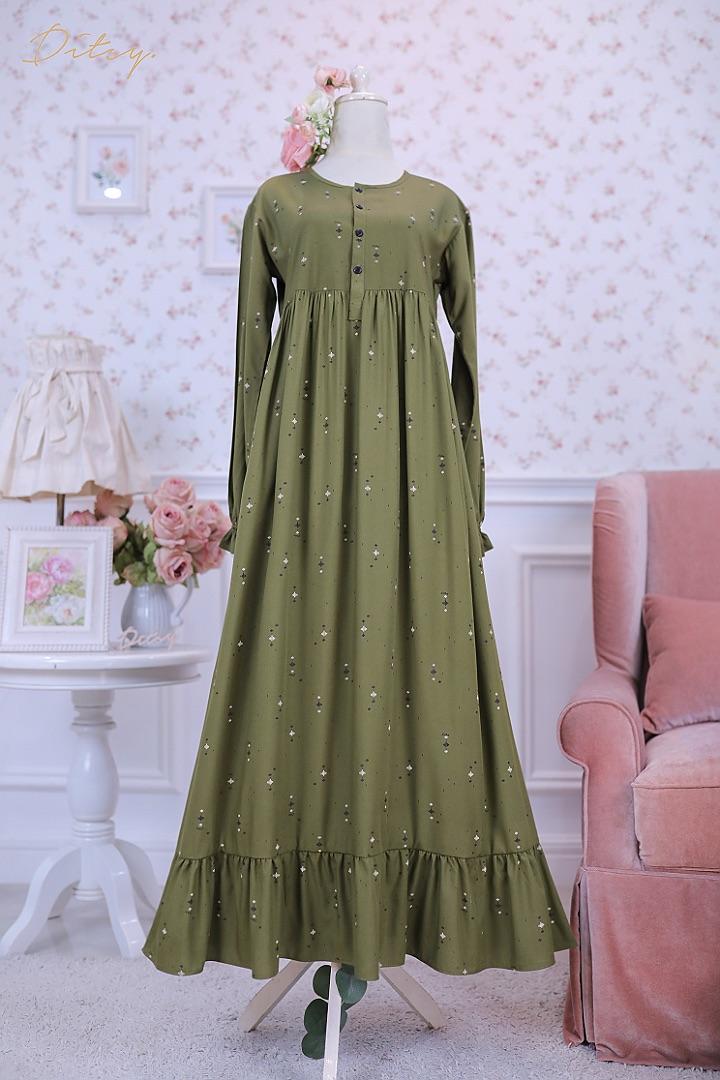 • Model Chesniy Fern Green: Series 5, warna dasar hijau. Ada ruffle bagian bawah menambah cantik daster ini.
