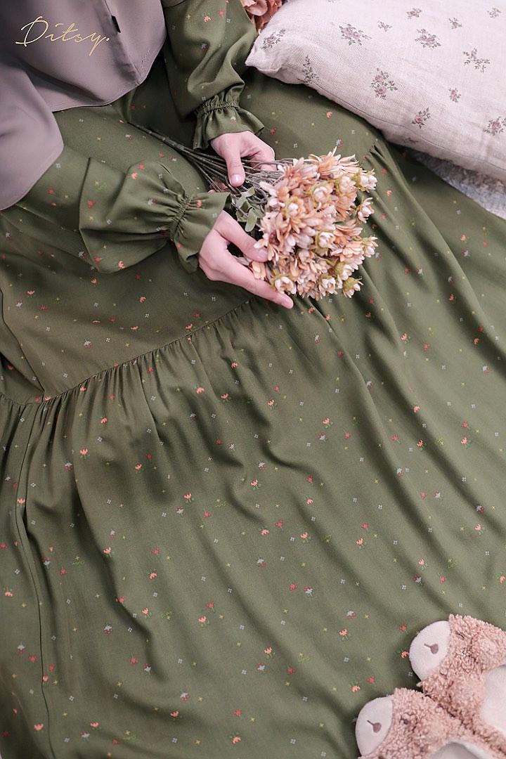 • Model Spiel Moss Green : Series 3, warna dasar hijau. Ada rempel didepan dan belakang bagian perut dan lutut yg membuat daster ini lebih slim namun tetap leluasa