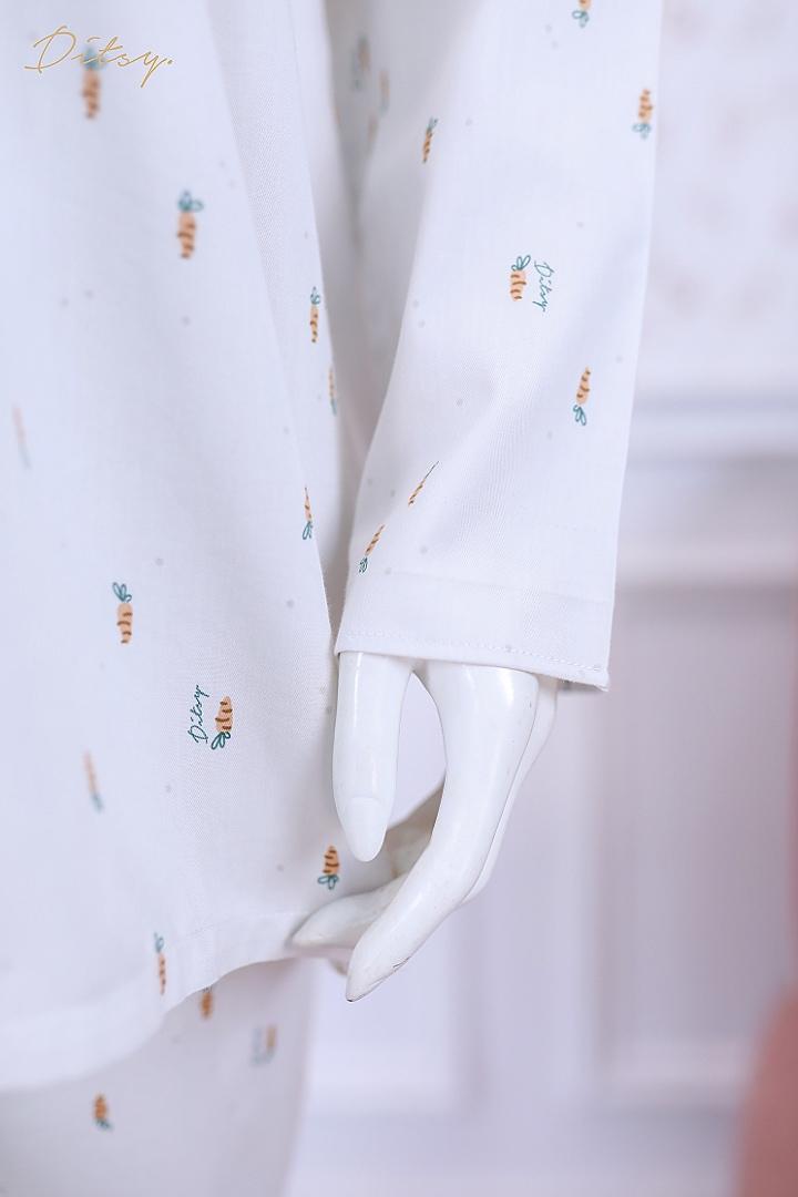 * Material Carrot Ivory Pajamas : Katun pinot, dengan warna dasar putih