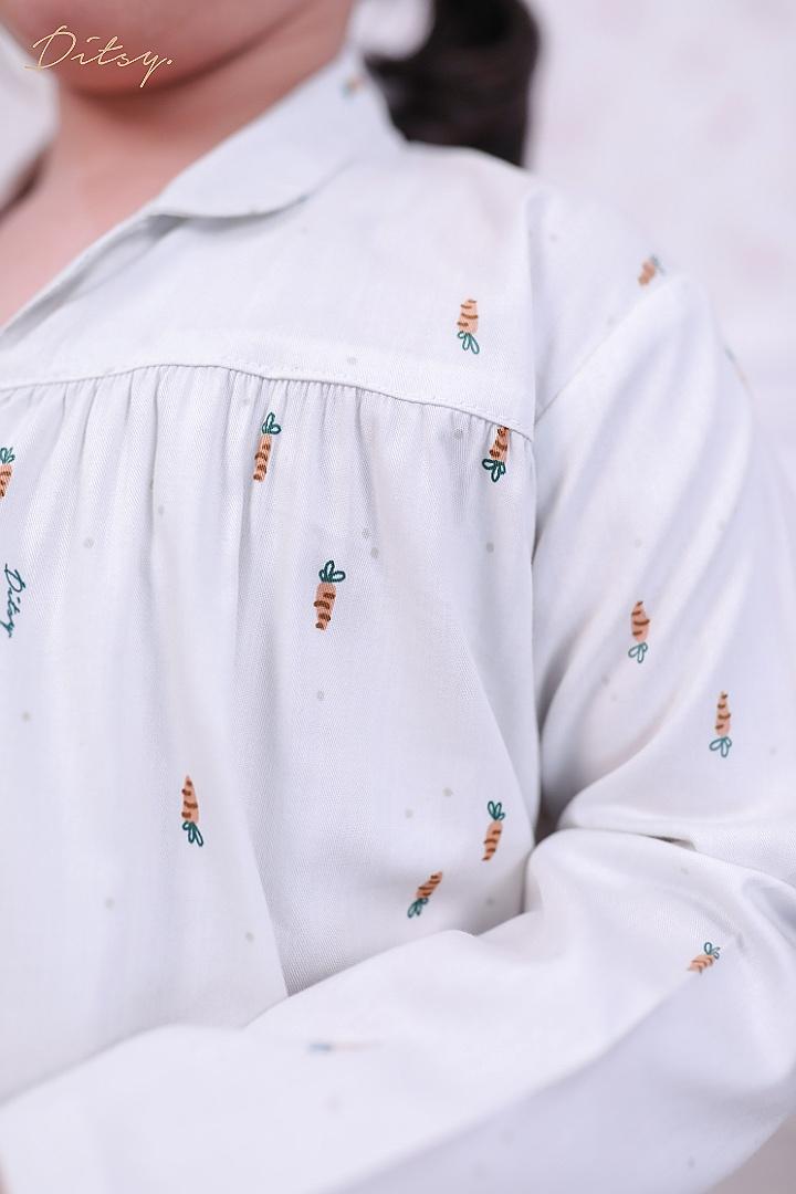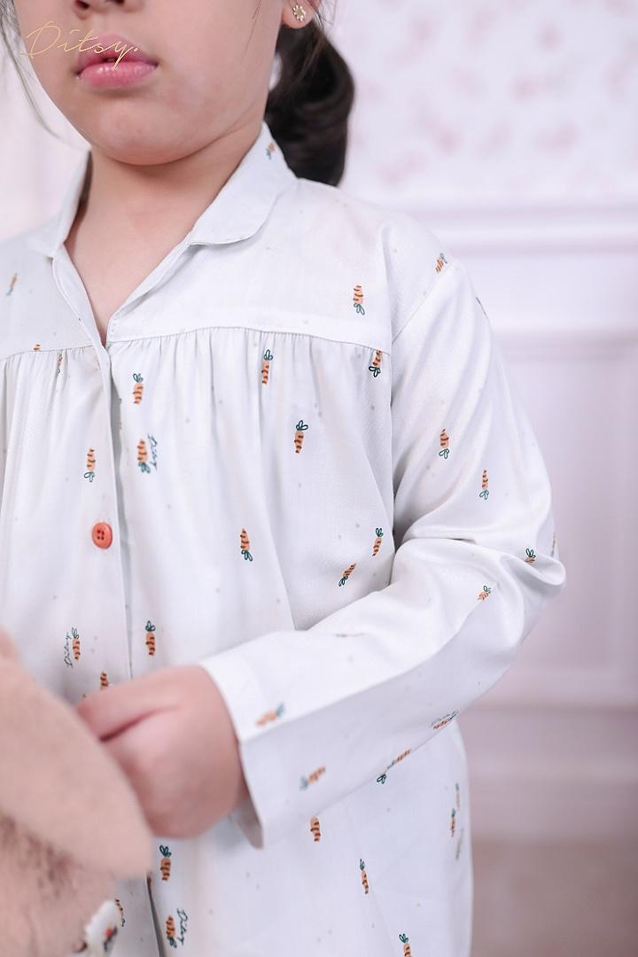 * Material Carrot Ivory Pajamas : Katun pinot, dengan warna dasar putih