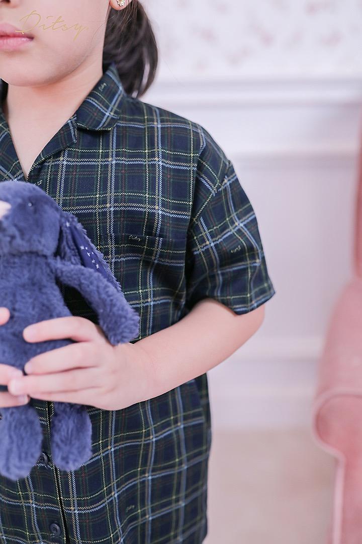* Material: Katun Pinot, dengan warna dasar biru tua