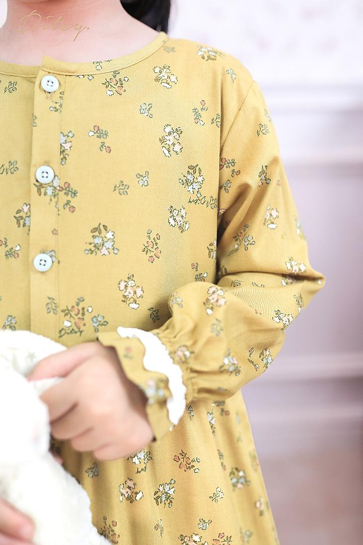 • Model Miori Mustard : Series 3, warna kuning. Ada rempel didepan dan belakang bagian perut dan lutut yg membuat daster ini lebih slim namun tetap leluasa. Terdapat renda dibagian tangan.
