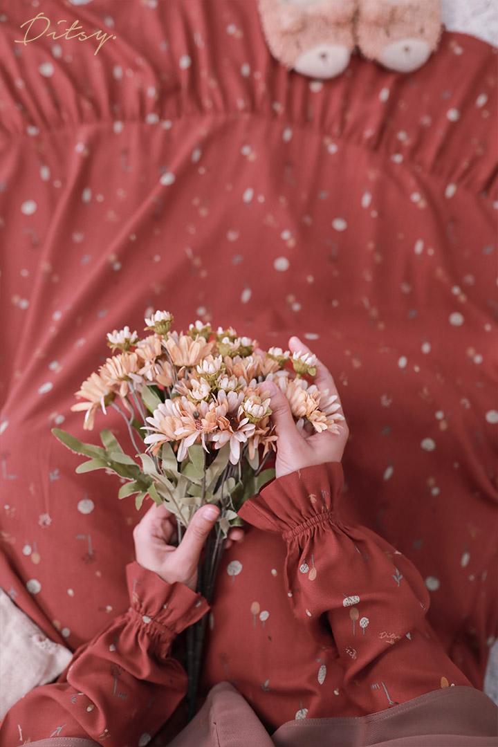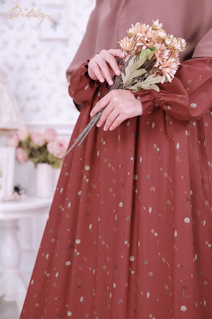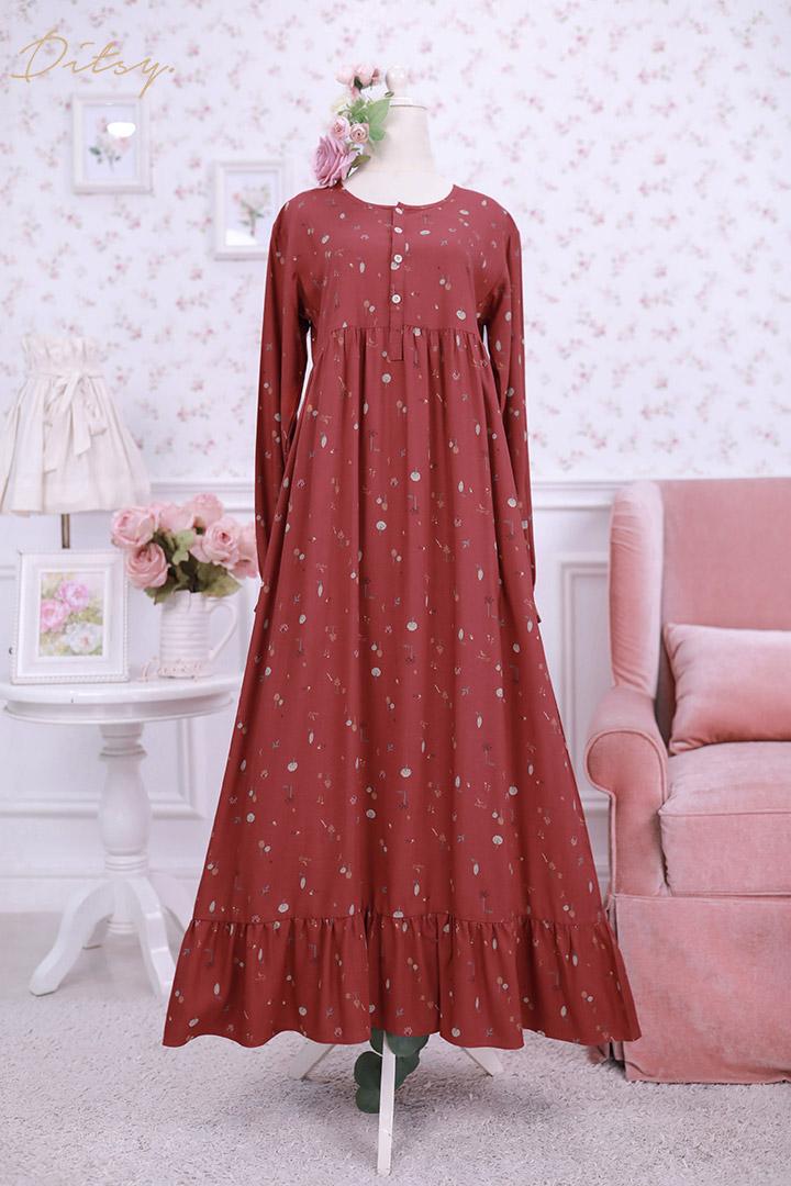 • Model Faline Red : Series 5, warna dasar merah ada hint orange. Ada ruffle bagian bawah menambah cantik daster ini