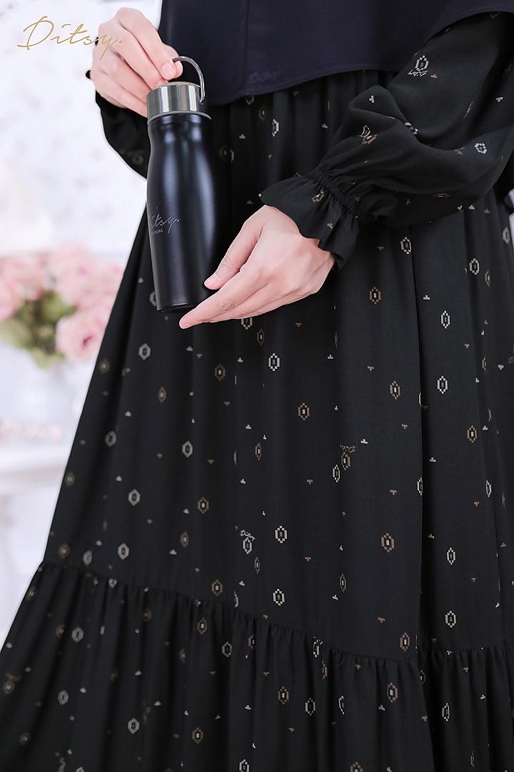 • Model Rua Sable Black : Series 3, warna dasar hitam. Ada rempel didepan dan belakang bagian perut dan lutut yg membuat daster ini lebih slim namun tetap leluasa